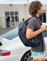 Work, Surf, Skate, Play - That's our day in SoCal. The DTLA Backpack is so soft it can compresses down to less than 2.5 inches. It looks and performs like a hard backpack, but it totally isn't.  Black on Black Dylan Sky Signature Material Modern Craftsmanship, High Quality Waterproof Laptop Section