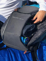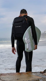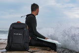 Work, Surf, Skate, Play - That's our day in SoCal. The Laguna Backpack is so soft it can compresses down to less than 2.5 inches. It looks and performs like a hard backpack, but it totally isn't. Featuring Black on Black Signature Waterproof Material with removable shelving to keep your gear in the perfect spot all day.